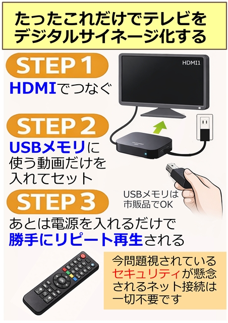 | 院内のテレビやモニターで 手間なく動画を流す方法! |